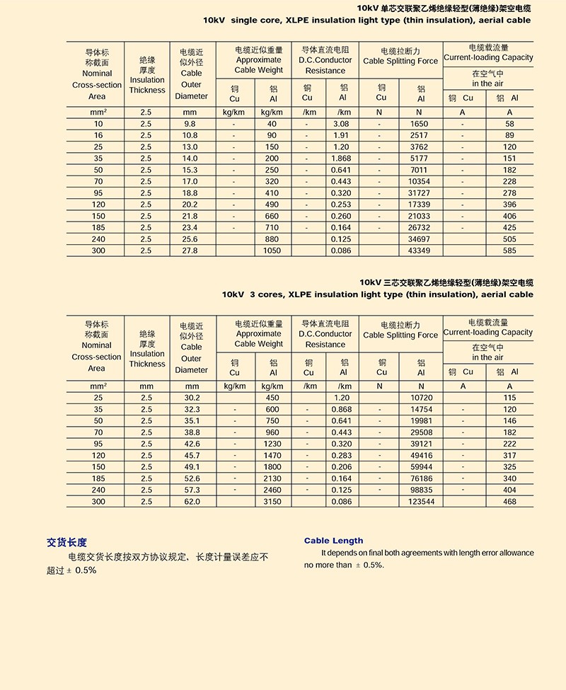 額定電壓10KV以下架空絕緣電纜