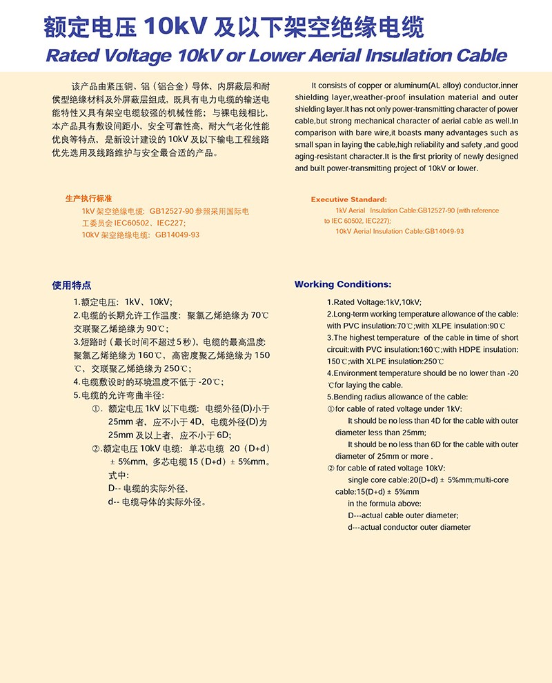 額定電壓10KV以下架空絕緣電纜的產(chǎn)品詳細(xì)介紹: