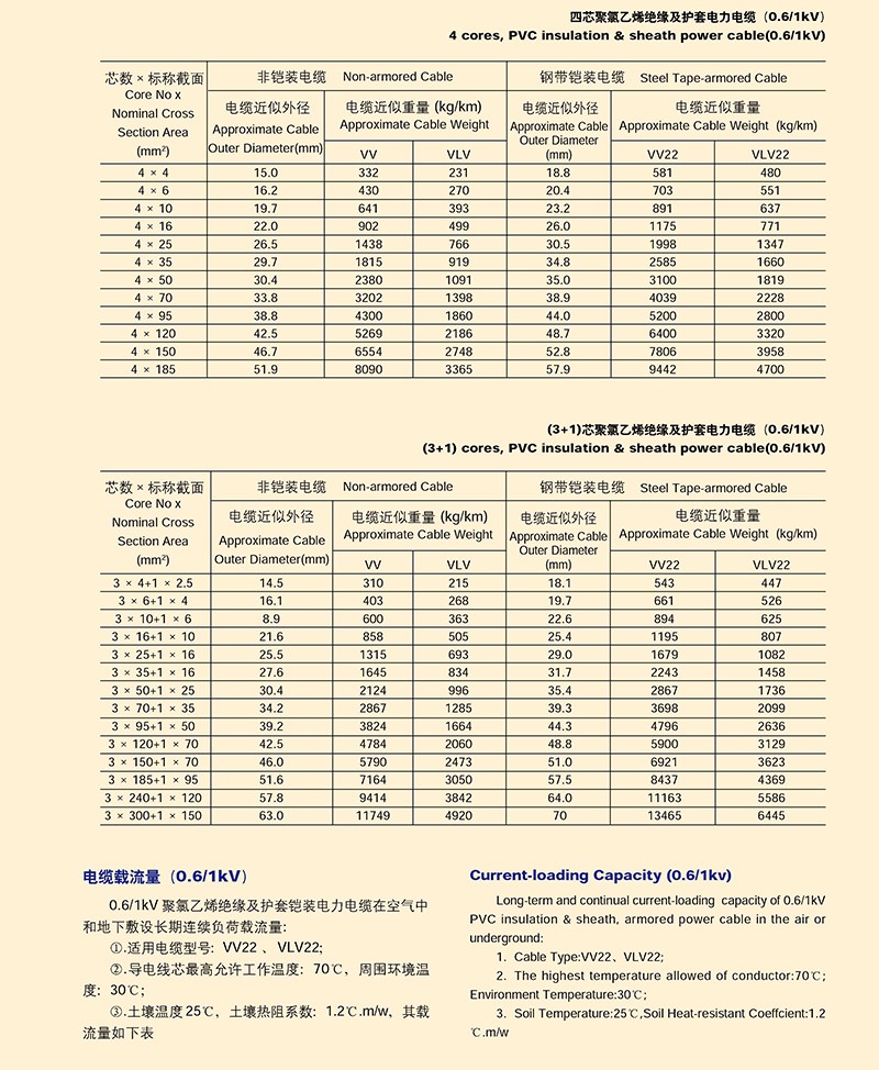 0.6/1KV聚氯乙烯絕緣電力電纜的產(chǎn)品詳細(xì)介紹: