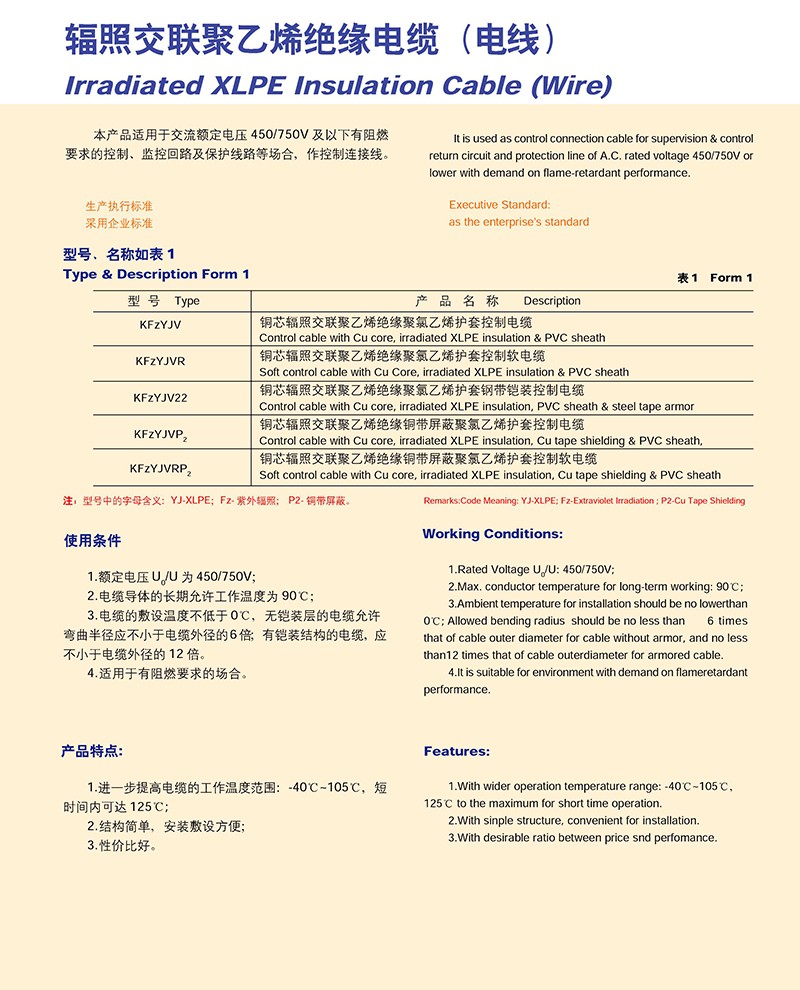 輻照交聯(lián)聚乙烯絕緣電纜(電線)的產(chǎn)品詳細介紹: