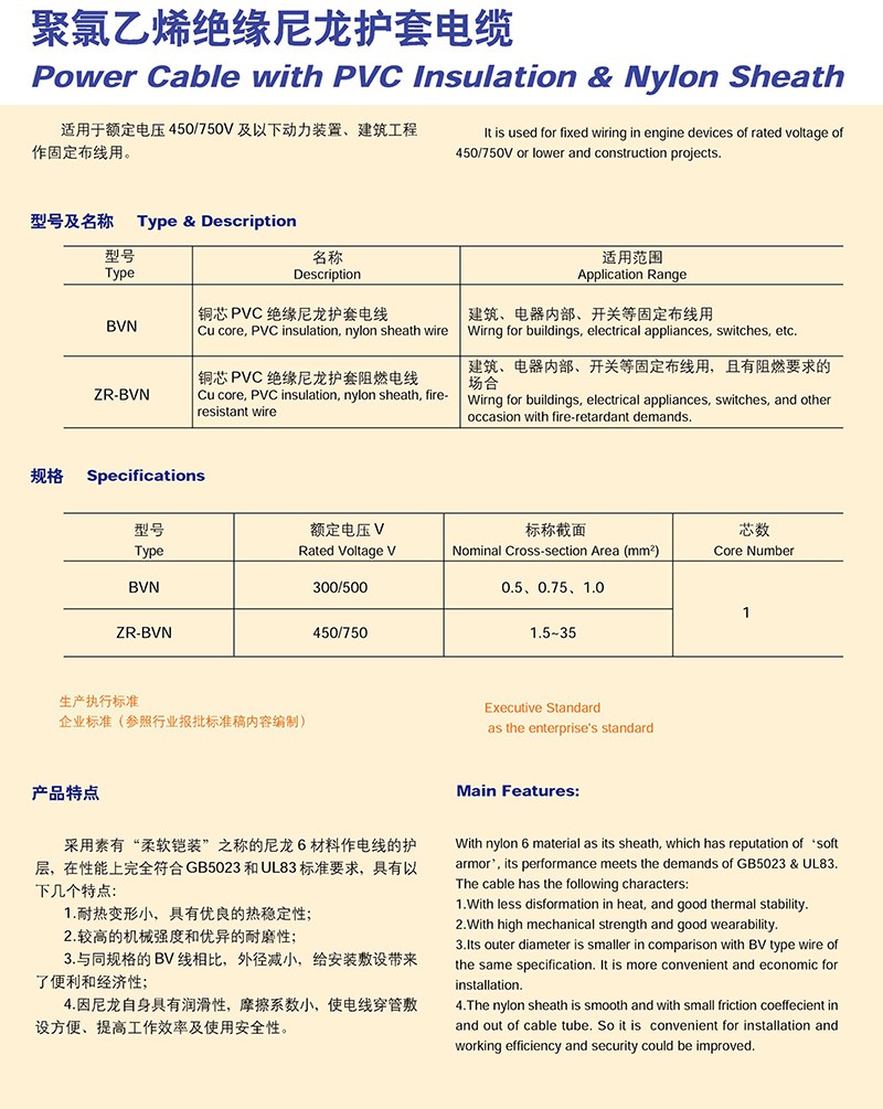聚氯乙烯絕緣尼龍護套電纜的產(chǎn)品詳細介紹:
