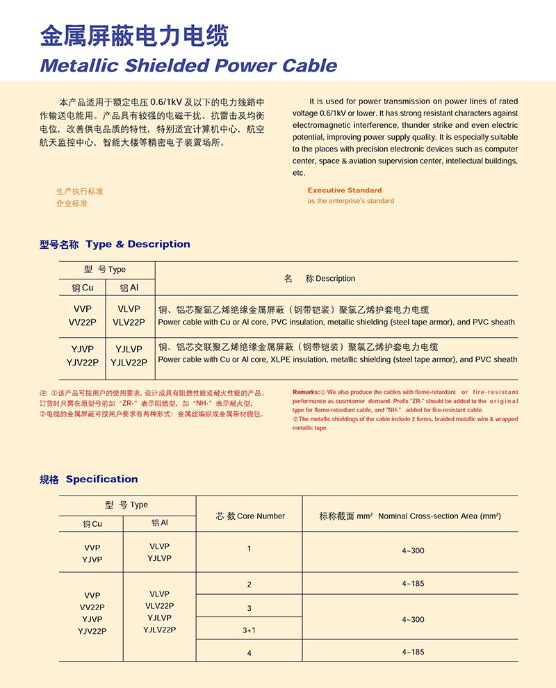 金屬屏蔽電力電纜的產(chǎn)品詳細介紹: